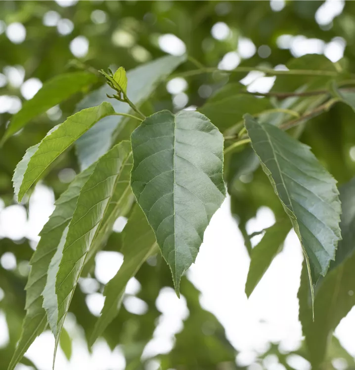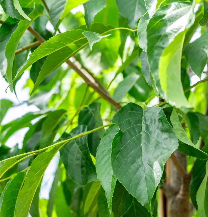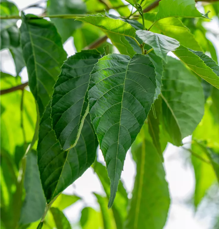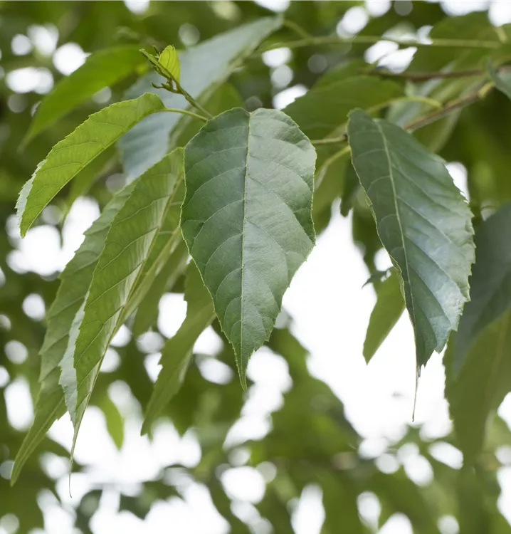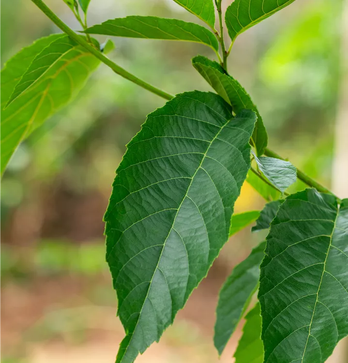 Blatt; dunkelgrün, ledrig, leicht glänzend