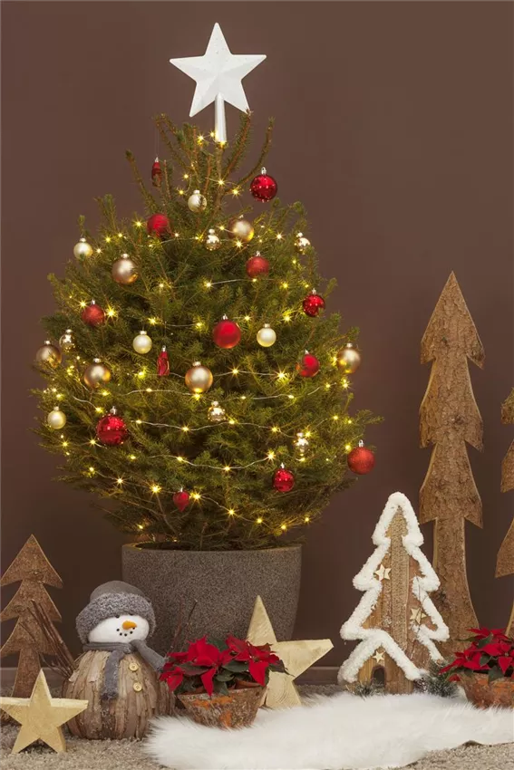 Picea abies So ist aus einem alten, weihnachtlich bemalten Pflanzkübel schnell ein dauerhafter und standfester Weihnachtsbaum-Ständer gefertigt, der Ihnen viele Jahre dienen kann. Ob Sie oder Ihre Kinder sich ein weihnachtliches Dekor ausdenken, das auf den Kübel gemalt wird, einen schönen Stoff oder festliches Schleifenband verwenden oder Sie zur Spraydose mit Goldlack und Glitter greifen – ein alter, unmodischer Blumenkübel bietet, neu dekoriert, einen schweren und somit sicheren Stand für Ihre Tanne.