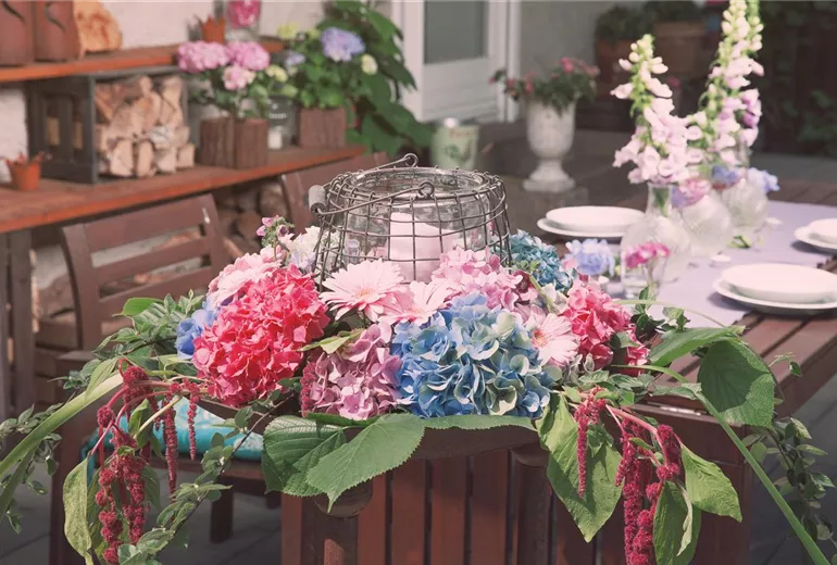 Blatt ist nicht gleich Blatt. Unterschiedliche Grüntöne, variantenreiche Formen von gross bis feingliedrig: Für jede Blüte ist das Passende dabei, das ihre Wirkung untermalt. Die Kombination verschiedener Blätter macht ein Arrangement besonders reizvoll. Sträucher oder Staudenbeete können hier Unverzichtbares liefern. Achten Sie beim Schnitt in Ihren Blumenbeeten darauf, dass die Blätter bereits voll entwickelt sind. Frisch Ausgetriebenes hält sich in der Vase nicht! Im Sommer haben z.B. die Blätter von Funkien, Elfenblumen oder Bergenien eine lederartige Struktur, die für eine lange Haltbarkeit in der Vase sorgt. Schneiden Sie immer nur so viel ab, wie Sie benötigen. Kräuter wie Rosmarin oder Lavendel brauchen vor der kalten, winterlichen Jahreszeit ein üppiges Blattkleid: Schneiden Sie deshalb ab September nicht mehr, denn die duftenden Zweige sind der natürliche Winterschutz der beliebten Pflanzen.
