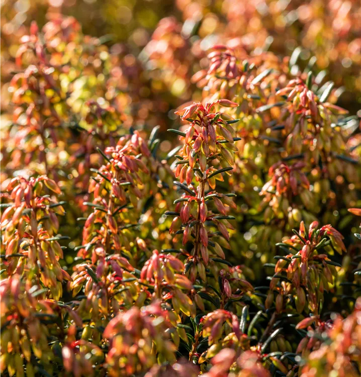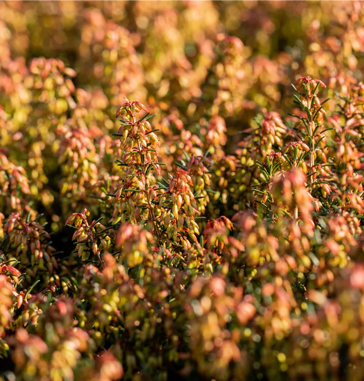 Wenn der Garten noch ruht, beginnt die Erica carnea ‘Wintersonne’ bereits zu blühen. Mit ihren zartrosa bis hellvioletten Blütenglöckchen bringt sie ab Januar Farbe in frostige Tage und erfreut das Herz aller Gartenliebhaber. Ihre leuchtenden Töne heben sich wunderschön vom winterlichen Grün ab – ideal für Steingärten, Rabattenränder oder Pflanztröge.