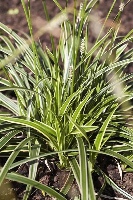 Acorus gramineus 'Variegatus' Die Ziergräser, die jetzt wunderbar im Garten blühen, können zwar im Herbst abgeschnitten werden, aber da sie mit Raureif im Winter ganz besonders schön aussehen, wäre es schade darum. Jedoch kann Regen und nasser Schnee so einiges anrichten, und den Pflanzen grossen Schaden zufügen. Deshalb werden sie jetzt zusammengebunden oder an einer Stützmauer angelehnt. Bast oder Jute eignen sich gut dafür, und am Boden sollte ein wenig trockenes Laub zusätzlich vor dem Umbrechen schützen.