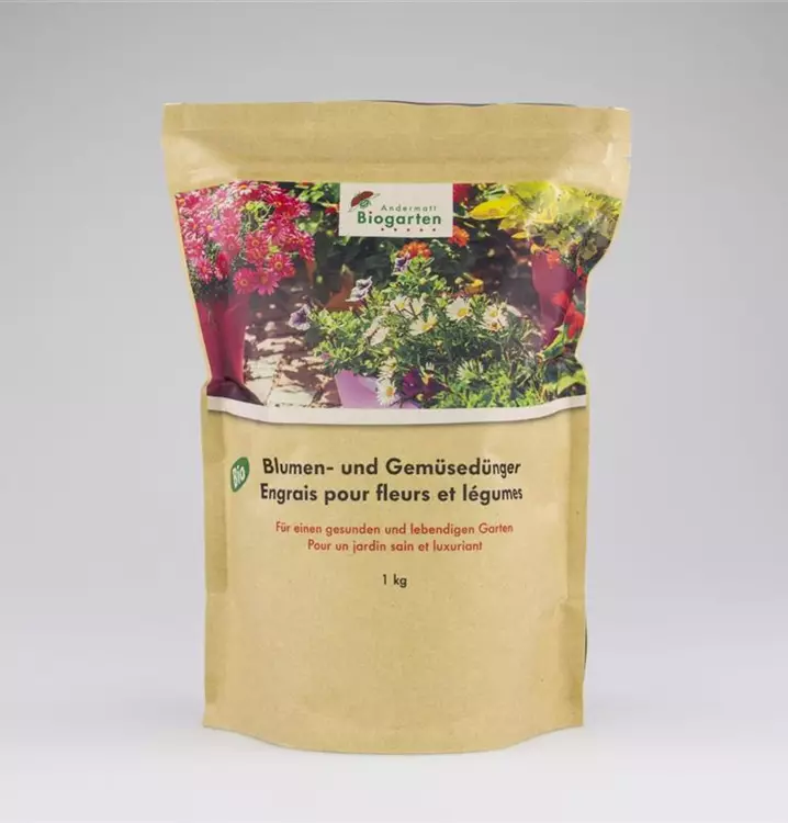 Universaldünger für Blumen und Gemüse Für Starkzehrer (Tomaten, Gurken, Kürbis, Lauch, Auberginen, Sellerie, etc.) 150–200 g Dünger pro m² vor der Aussaat/Pflanzung gleichmässig in die oberste Bodenschicht einarbeiten. Nachdüngung mit 50–100 g pro m². Für Schwachzehrer vor der Aussaat/Pflanzung 100–150 g Dünger pro m² düngen. Nachdüngung nur auf nährstoffarmen Böden. Für Sommerflor, Staudenbeete oder Blütensträucher im Frühling 150–200 g Dünger pro m² einstreuen und einarbeiten. Inhalt / Zusammensetzung: Organischer Stickstoff (NO, 5%), Phosphat (P2O5, 3%), Kali (K2O, 8%), Calciumoxid (CaO, 8%), Magnesiumoxid (MgO, 2%), Organische Substanz pflanzlicher und tierischer Herkunft (OS, 53%), Trockensubstanz (TS, 90%)