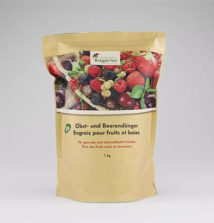 Für vitale Obstbäume und Beerensträucher. Biologischer Obst- und Beerendünger aus 100% natürlichen Inhaltsstoffen und hohem Anteil an organischen Substanzen. Für widerstandsfähige Obstbäume und schmackhafte Beeren. Festdünger für die Anwendung im Freiland, in Beeten, Rabatten oder bei Neupflanzungen in Töpfen. Im Frühling bei Beeren und Sträuchern 100 bis 150 g Dünger pro m² und bei Obst und Reben 70 bis 120 g pro m² im Wurzelbereich streuen und leicht einarbeiten. Nachdüngung mit 50 bis 100 g pro m² bei Beeren und 50 g bei Obst und Reben. Inhalt / Zusammensetzung: Organischer Stickstoff (NO, 7%), Phosphat (P2O5, 3%), Kali (K2O, 5%), Calciumoxid (CaO, 7.6%), Magnesiumoxid (MgO, 2%), Organische Substanz pflanzlicher und tierischer Herkunft (OS, 58%), Trockensubstanz (TS, 91%)