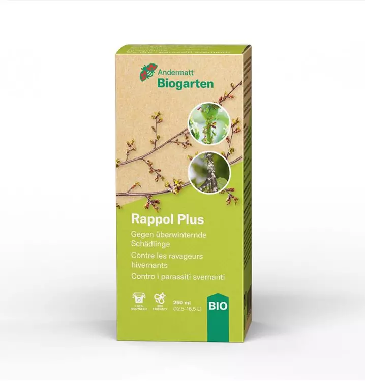Biologisches Insektizid auf Basis von natürlichem Rapsöl gegen überwinternde Schädlinge. Rappol Plus in einem Sprühgerat mit Wasser verdünnen und die Pflanzen allseitig bis zur Tropfnässe besprühen. Anwendung bei Bedarf nach 7–10 Tagen wiederholen. Maximal 3 Behandlungen pro Jahr Anwendung bei Temperaturen zwischen 12 und 25 °C. Inhalt / Zusammensetzung: Rapsöl (92%)