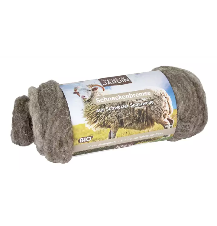 Schneckenbremse aus gewaschener Schafwolle, ohne Fremdzusätze und Chemikalien, schützt vor Schneckenfrass im Garten- oder Hochbeet.