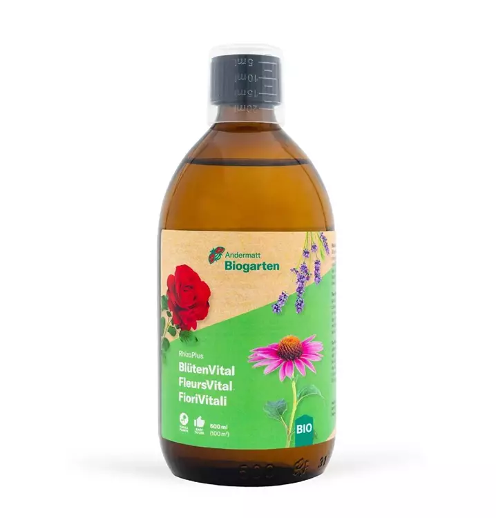 BlütenVital enthält das natürliche Bodenbakterium Bacillus atrophaeus, das sich an den jungen Wurzeln ansiedelt. Es fördert ein gesundes Wurzelwachstum und verbessert die Aufnahme von Wasser und Nährstoffen deutlich.
