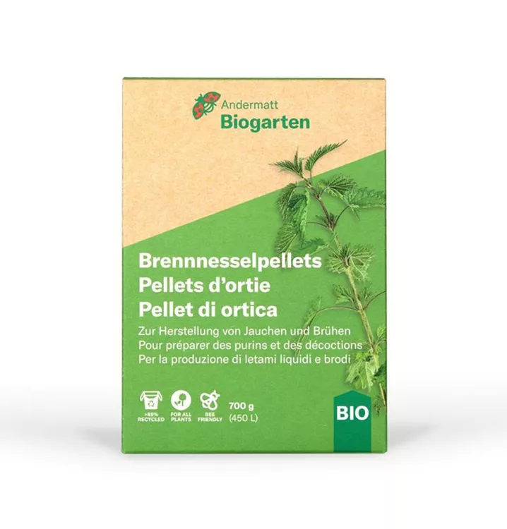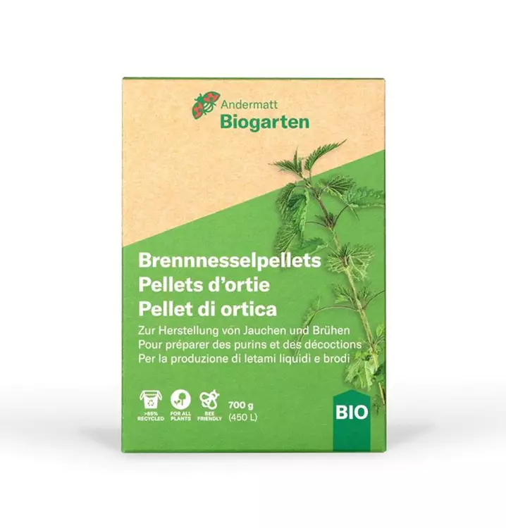 Zur Insektenabwehr und Pflanzenstärkung Brennnesselpellets zum Ansetzen von Brühen und Jauchen, welche zur Pflanzenstärkung und Schädlingsabwehr verwendet werden Brennnesselbrühe enthält neben Gerbstoffen auch Mineralien, welche das Pflanzengewebe stärken und die Gesundheit fördern. Hilft zudem Schädlinge fernzuhalten. Brennnesselpellets zum Ansetzen von Brühen und Jauchen, welche zur Pflanzenstärkung und Schädlingsabwehr verwendet werden. Brennnesselbrühe enthält neben Gerbstoffen auch Mineralien, welche das Pflanzengewebe stärken und die Gesundheit fördern. Hilft zudem Schädlinge fernzuhalten. Inhalt / Zusammensetzung: Brennesseln
