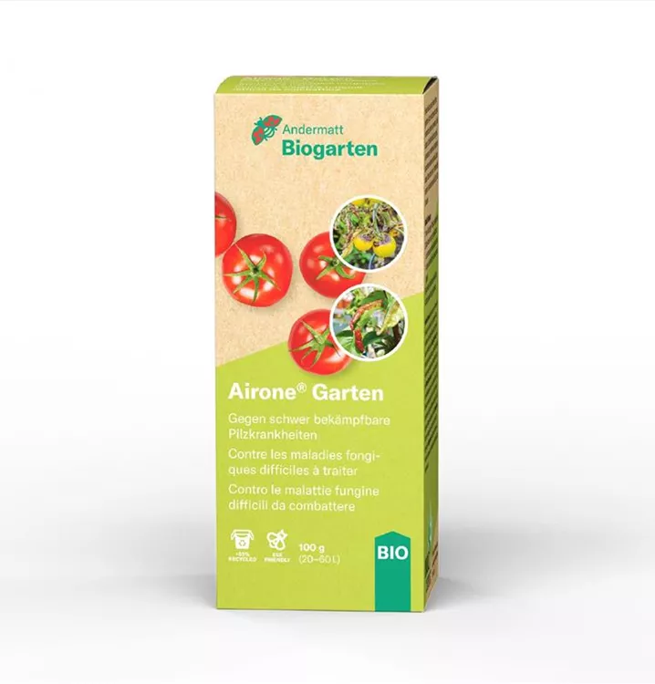 Vorbeugend gegen Kraut-, Frucht- und Knollenfäule, Kräuselkrankheit, Falschen Mehltau, Schorf, Septoria-Blattfleckenkrankheit , Alternaria-Kohlschwärze und Adernschwärze an Tomaten, Kartoffeln, Gemüse, Reben, Stein- und Kernobst. Airone Garten enthält 28% Kupfer. Das Kupfer verhindert die Keimung von Pilzsporen und bietet so einen umfänglichen Schutz. Airone Garten in einem Sprühgerät mit Wasser auflösen. Das nötige Mischverhältnis ist abhängig von Kultur und Krankheit. Anwendungszeitpunkt: Steinobst: Beim Austrieb / Kernobst: Beim Austrieb und vor der Blüte / Reben: Bis spätestens Ende August / Gemüse, Kartoffeln: Bei Befallsbeginn Inhalt / Zusammensetzung: Kupfer (28%)