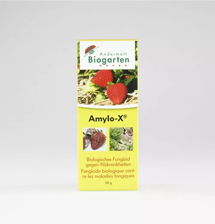 Biologisches Fungizid gegen Pilzkrankheiten auf Basis natürlicher Bodenbakterien. Amylo- X wirkt vorbeugend gegen Graufäule (Botrytis) an Erdbeeren, Auberginen, Paprika und Tomaten sowie gegen Falschen Mehltau und Sclerotinia-Fäule bei Salaten. Gegen Graufäule, Falschen Mehltau, Sclerotinia: vorbeugend oder bei ersten Symptomen. Nach 5 bis 10 Tagen wiederholen. Inhalt / Zusammensetzung: Bacillus amyloliquefaciens sp. Plantarum