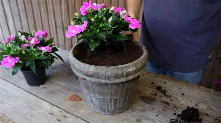 Edellieschen - Einpflanzen in ein Gefäss (1) Das Edellieschen ist mit dem traditionell-beliebten Fleissigen Lieschen verwandt, hat aber grössere Blüten und etwas anders geformte Blätter.