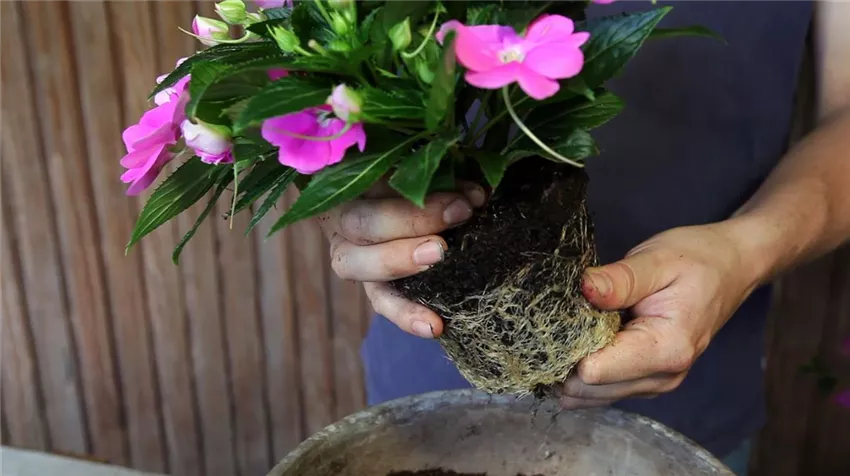 Edellieschen - Einpflanzen in ein Gefäss (3) Wenn Sie die Edellieschen in ein grösseres Gefäss umsetzen, entfernen Sie zunächst den alten Topf, damit die Pflanzen neue Wurzeln bilden können und sich so optimal mit Wasser und Nährstoffen aus der neuen Erde versorgen können.