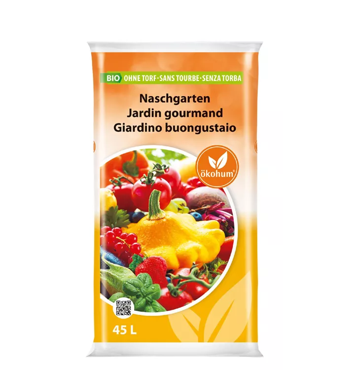Naschgarten ist geeignet für den gesunden Anbau von Zier- und Nutzpflanzen in Beeten und Pflanzgefässen. Die torffreie Erde Naschgarten wird hergestellt aus nachwachsenden Rohstoffen wie Pflanzenfasern und Rindenhumus, mineralischen Strukturstoffen und Schafwoll-Pellets.