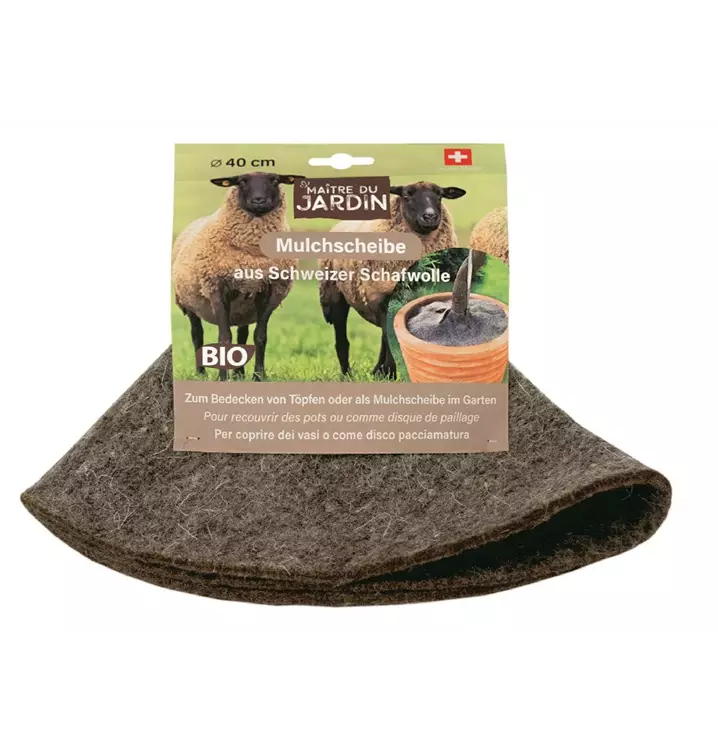 Mulchscheibe für Töpfe und Pflanzen aus Schweizer Bio-Schafwolle