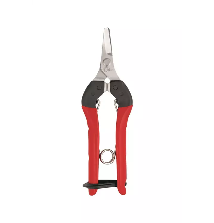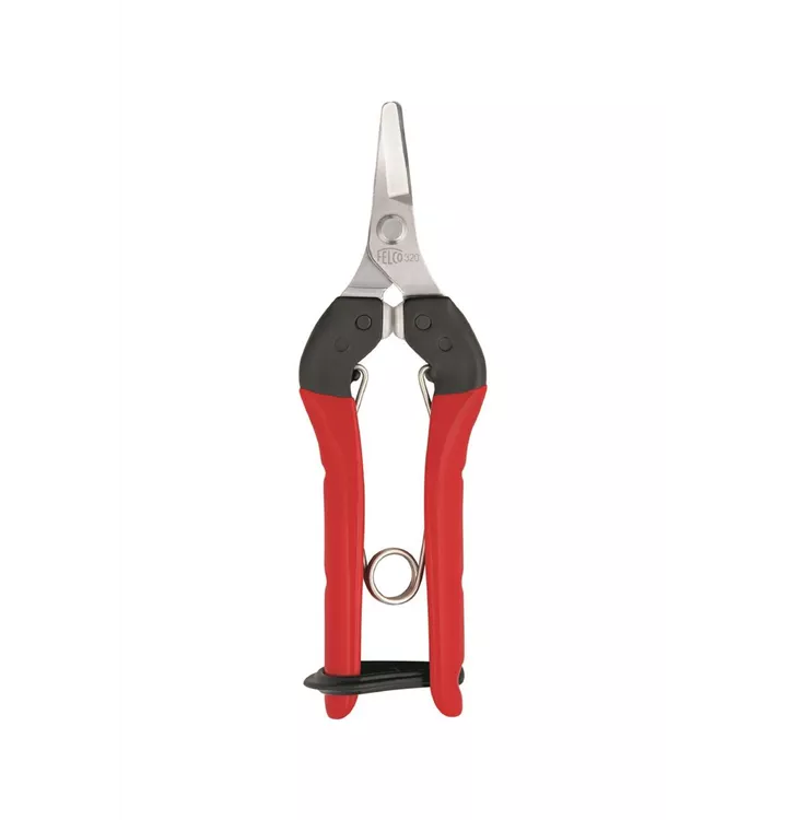 Die kompakte und besonders handliche Ernte- und Leseschere FELCO 320 ist mit einer gebogenen Klinge ausgestattet, mit der Obst- oder Gemüsestiele geschnitten werden können, ohne dabei die Ernte zu beschädigen. Diese Ernte- und Leseschere wird sich bei der Ernte schnell als treuer Verbündeter erweisen! Sie verfügt über Stossdämpfer aus weichem Polyurethan und sorgt damit bei allen Schnittarbeiten für grösstmöglichen Komfort und weniger Muskelverspannungen. Ihre Klingen aus Karbonstahl sind mit einer Nickelbeschichtung überzogen, um sie vor Korrosion zu schützen und das Öffnen und Schliessen der Klingen zu erleichtern.