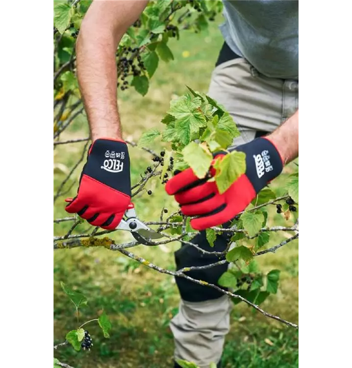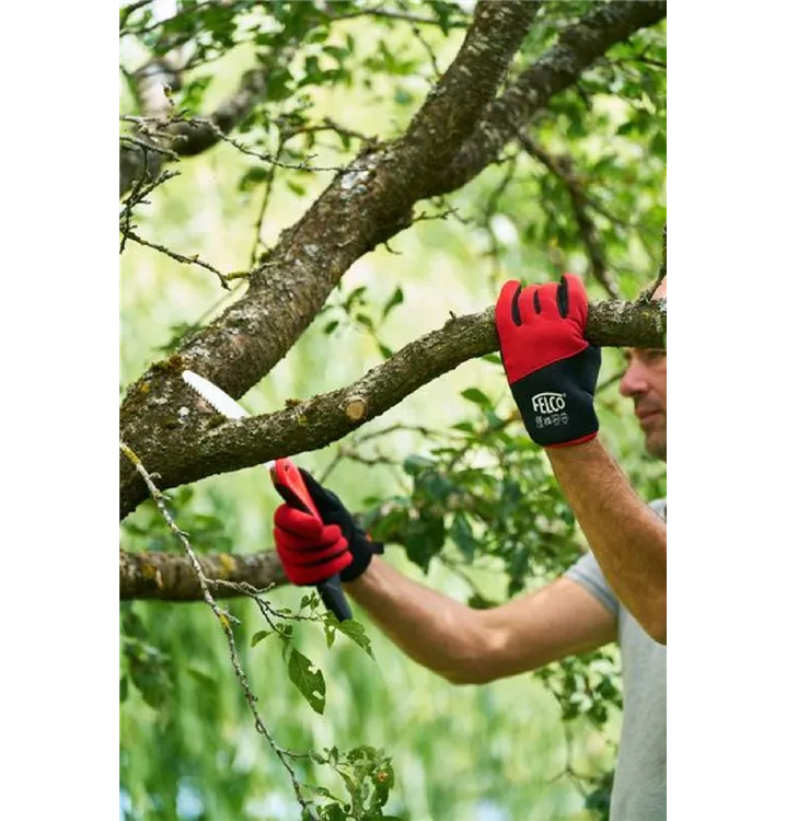 Diese hochgradig schnittfesten Handschuhe wurden entwickelt, um das Risiko leichter Schnittverletzungen beim Beschneiden mit einer manuellen FELCO-Gartenschere oder einer Zugsäge zu vermeiden. Die weiche und strapazierfähige Handfläche aus Kunstleder bietet eine ausgezeichnete Griffigkeit, während die Oberseite der Finger durch ein mit hoch schnittfesten Fasern gefüttertes Netz geschützt ist. Der elastische und flexible Neoprenrücken und das atmungsaktive Netzgewebe am Daumen sorgen für perfekte Beweglichkeit.