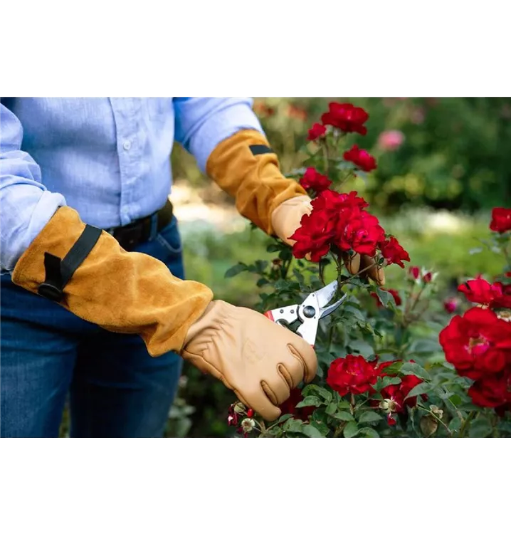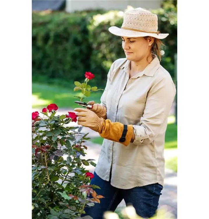 Diese Handschuhe wurden speziell für die Bedürfnisse des modernen Gärtners entwickelt und bieten eine Dornenresistenz für die Gartenarbeit mit Rosen und ein angenehmeres Gartenerlebnis. Sie sind aus hochwertigem Rindsleder gefertigt, das weich, flexibel und unglaublich robust ist.