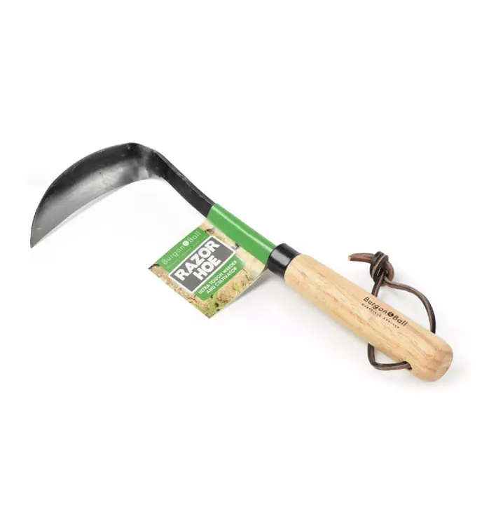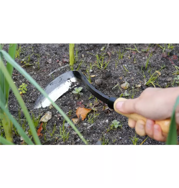 Diese scharfe abgewinkelte japanische Hacke wird durch den Boden in Richtung des Gärtners gezogen. Sie ist ideal für die Bodenbearbeitung und entfernt Unkraut. Die Klinge ist aus japanischem Stahl und mit Carbon überzogen. Damit ist die maximale Kraft und Schärfe der Klinge kombiniert. Der Handgriff ist aus Hartholz. Gesamtlänge 30 cm.