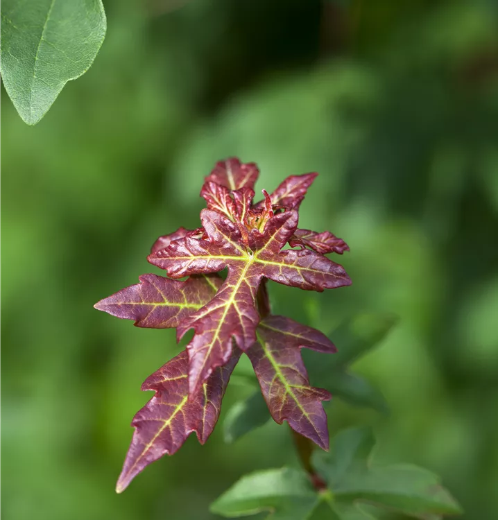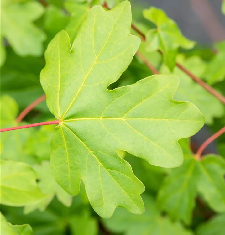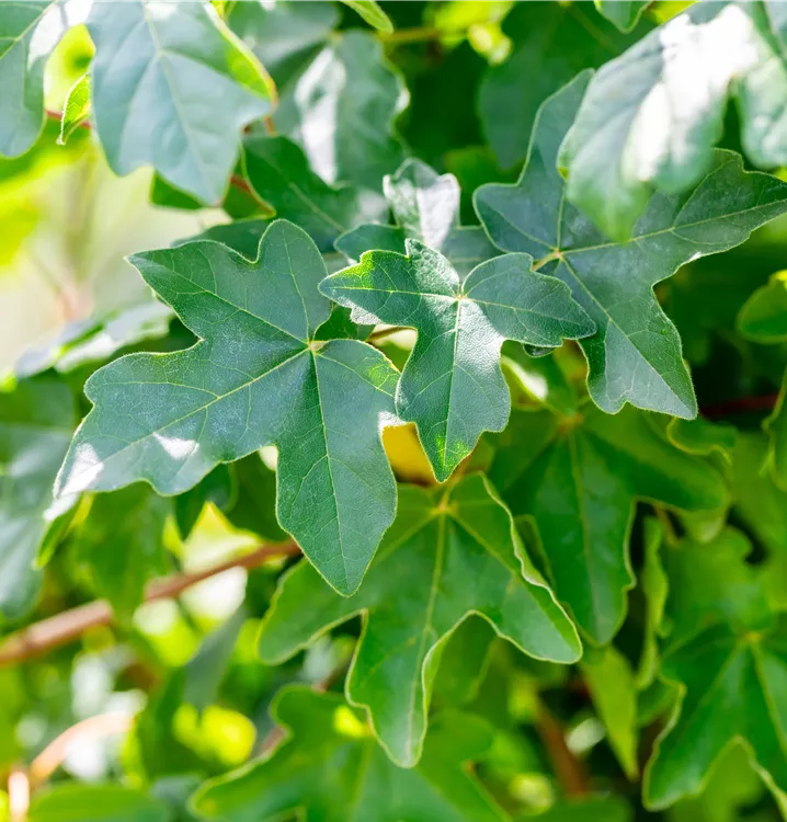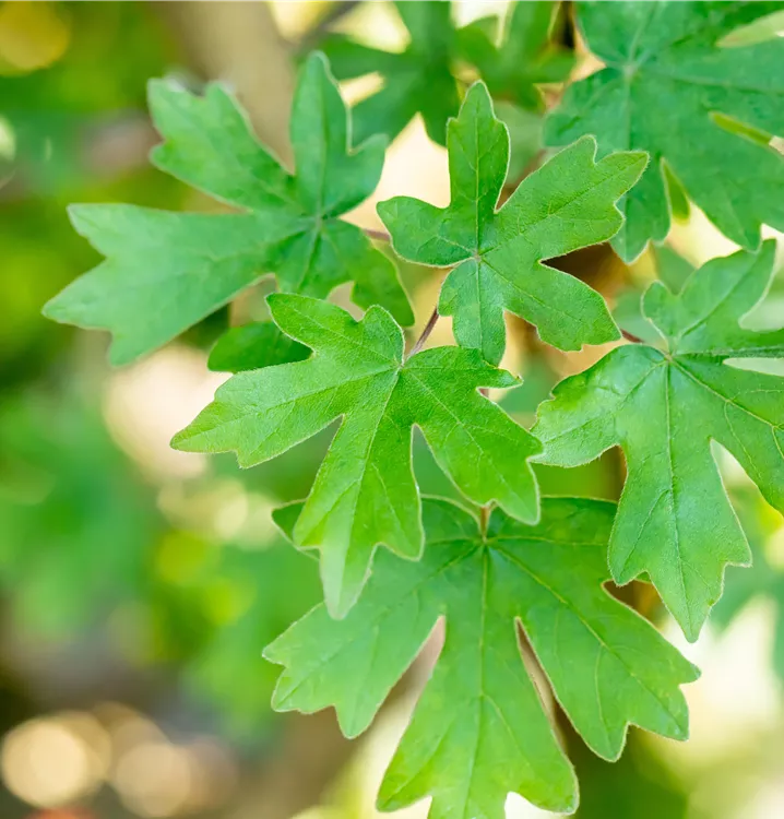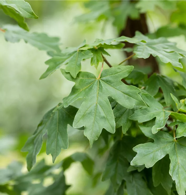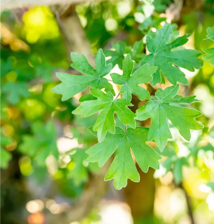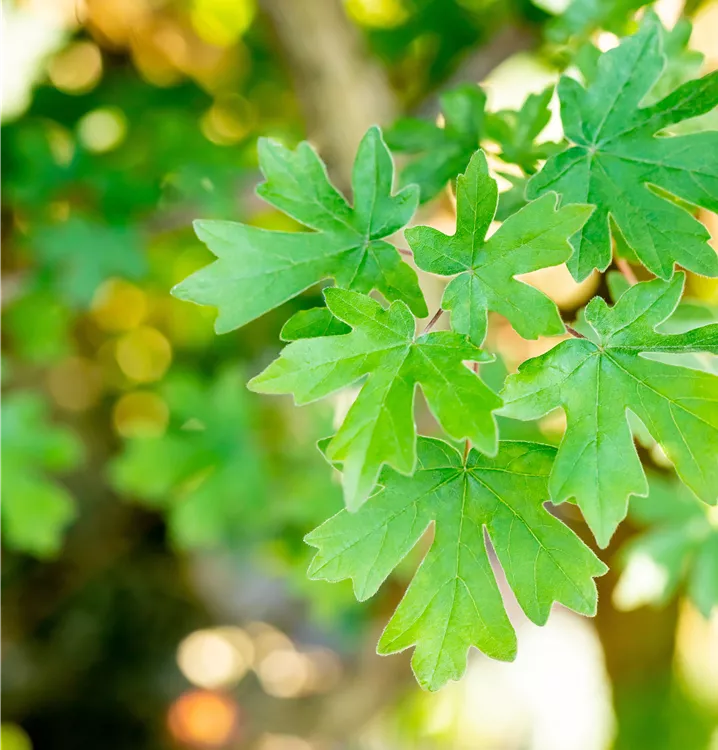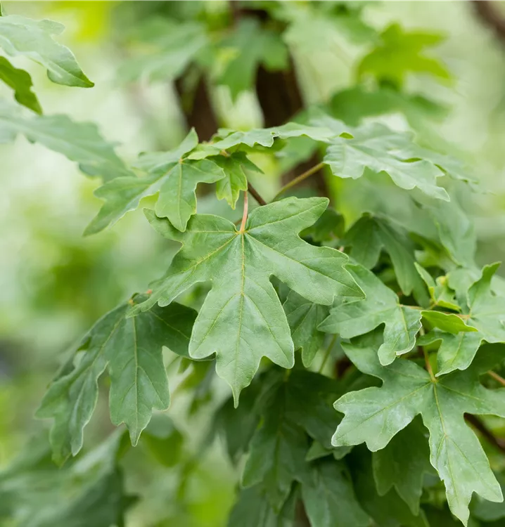 Der Feldahorn (Acer campestre) ist ein aufrechter, breiter Grossstrauch oder Kleinbaum, der grüngelbe, in Rispen angeordnete Blüten hervorbringt. Sie erscheinen im Mai. Aus diesen gehen ab August braune Flügelfrüchte hervor. Zudem trägt der Feldahorn, dunkelgrüne Blätter. An einem sonnigen bis halbschattigen Standort mit durchlässigem, kalkhaltigem, nährstoffreichem Boden erreicht er gewöhnlich eine Höhe von ca. 15 m und wird ca. 10 m breit.