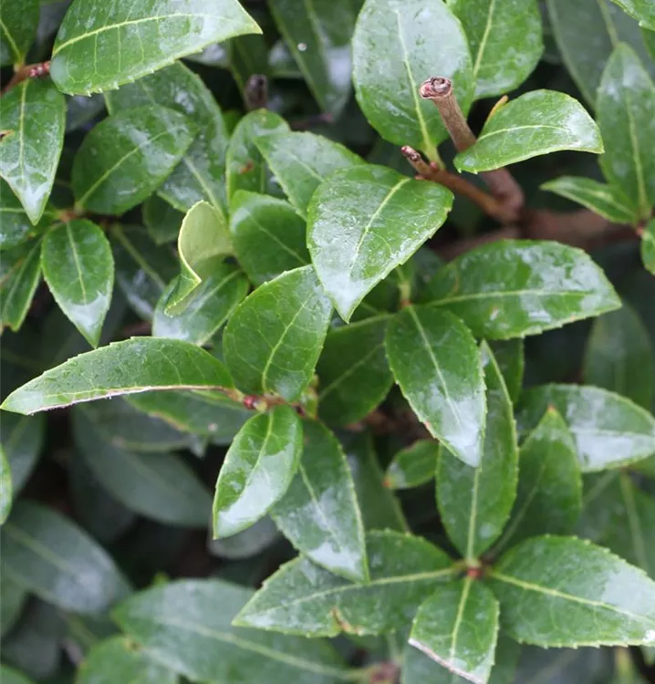 Die zarten, sternförmigen Blüten erscheinen im Frühling und erfüllen die Luft mit einem betörenden, jasminähnlichen Duft. Das glänzende, dunkelgrüne Laub bietet ganzjährig Struktur und Sichtschutz. Osmanthus burkwoodii wächst langsam und kompakt, eignet sich ideal als duftende Hecke, formschöner Solitär oder Begleiter zu Rosen.