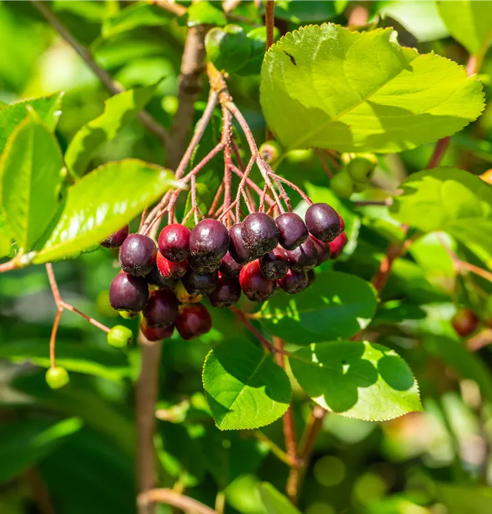 tig, Herbst rotorange, Früchte schwarz, essbar,