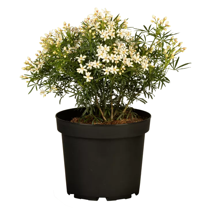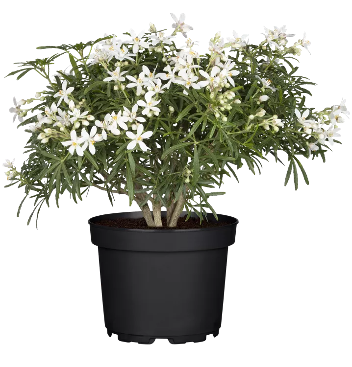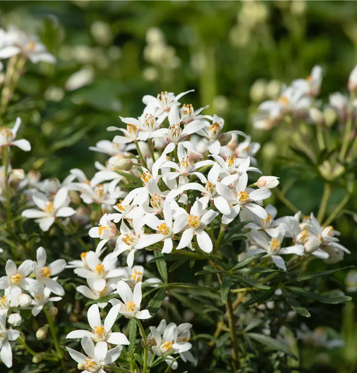 Strauch, Blüte weiss, duftend, Juni - Juli, bis 2 m, sonnig, Einzelstellung, geschützt oder Kübel