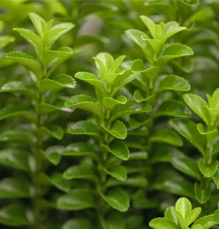 Euonymus japonicus 'Green Spire' wächst kompakt und säulenförmig bis zu einer Höhe von ca. 1 bis 1,5 Metern. Sein glänzend dunkelgrünes Laub bleibt das ganze Jahr über dekorativ und schnittverträglich. Die Pflanze bevorzugt sonnige bis halbschattige Standorte und kommt auch mit Stadtklima und Kübelhaltung gut zurecht.