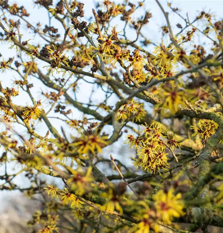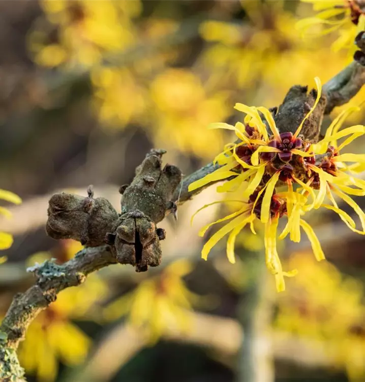 Zu ihren Stärken gehören unbestreitbar ihr zuverlässig üppig ausfallender Blütenflor in Form von hellgelben Schmuckstücken, die erst (für Zaubernüsse) sehr spät Januar/Februar aber dafür lang erscheinen. Die gelben fadenförmigen Blüten haben eine sehr schöne Fernwirkung.
