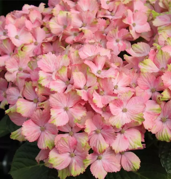 Die herrlichen Bälle werden durch zunächst zartgrüne Einzelblüten gebildet, die sich aber nach und nach in adrette Schönheiten verwandeln und eine dezente Farbkombination aus weiss und rosa zeigen, bis schliesslich die rosa Nuance überwiegt.