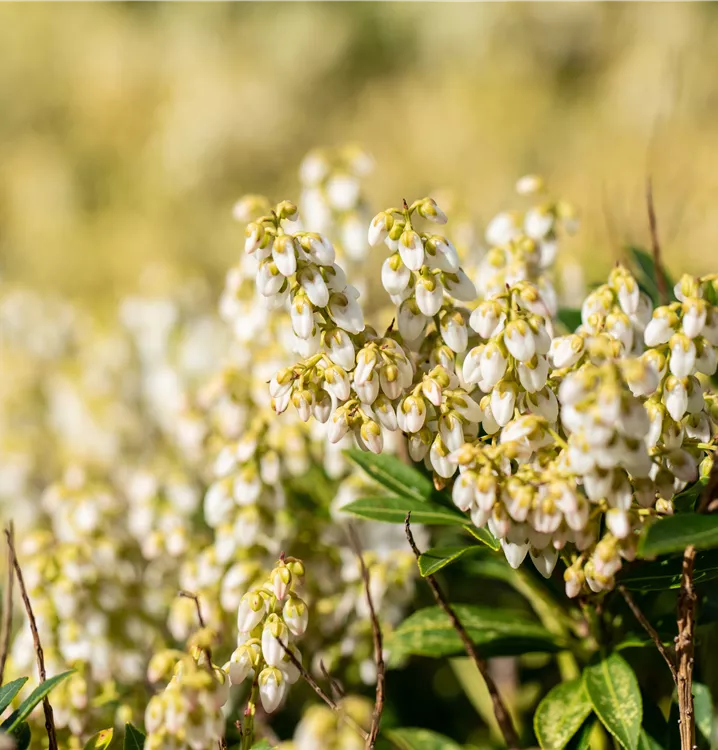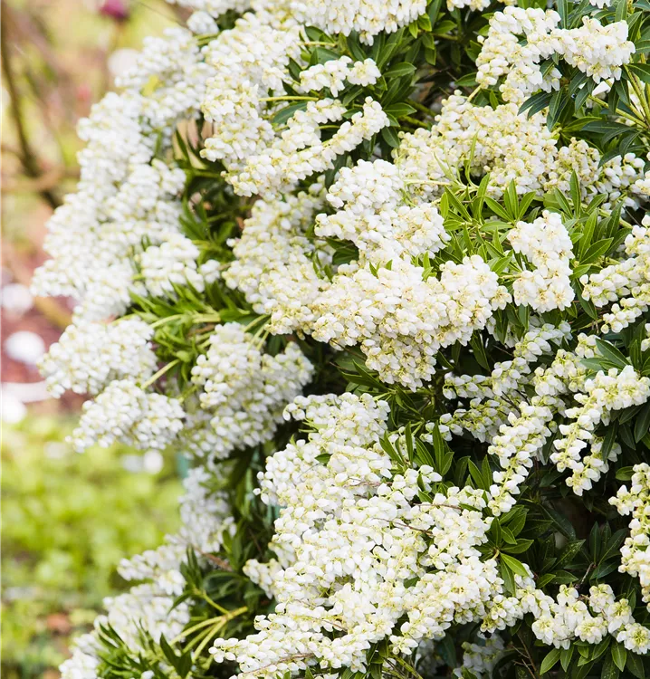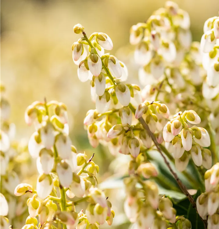 Blütenrispen erst chremeweiss dann weiss, Blütezeit: