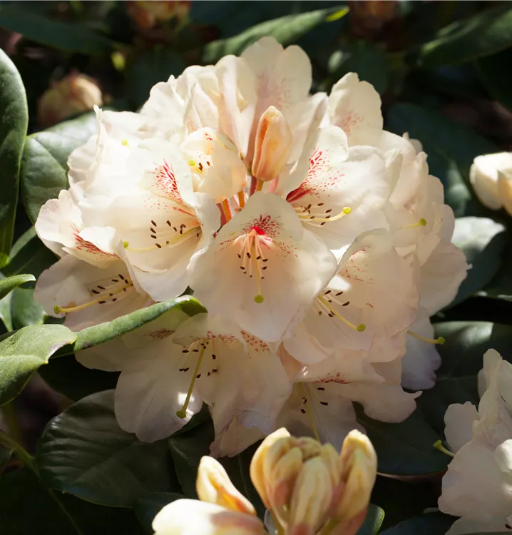 Blütenfarbe: cremegelb; Blütezeit: Mitte - Ende Mai, Wuchs: dicht, rundkompakt