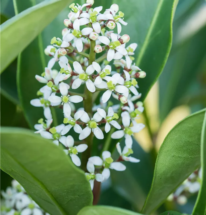 rötlich gefärbnten Blütennknospen und Blattstielen