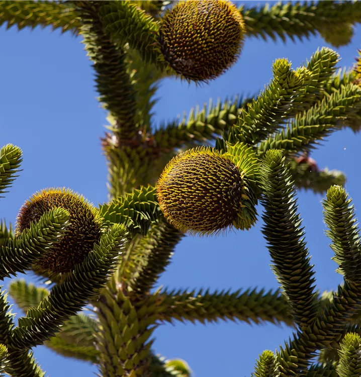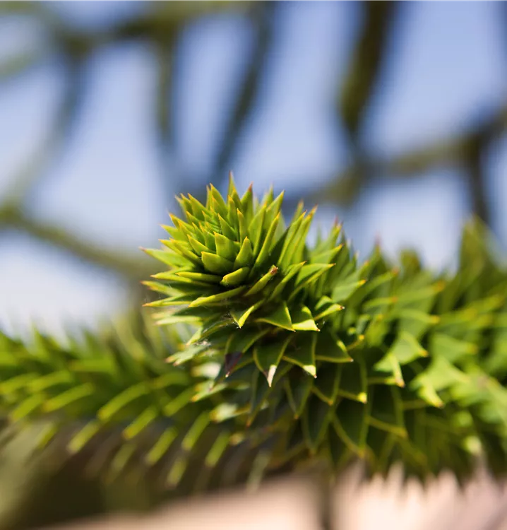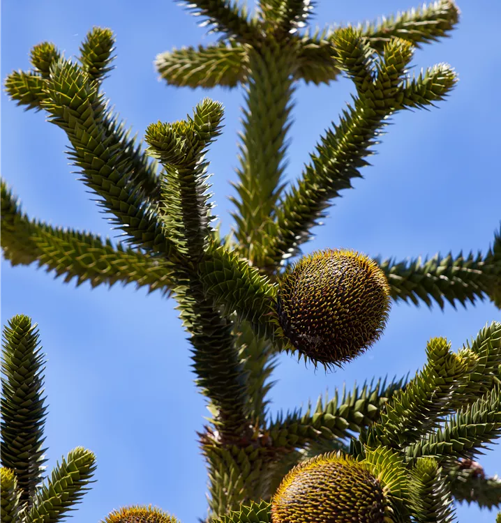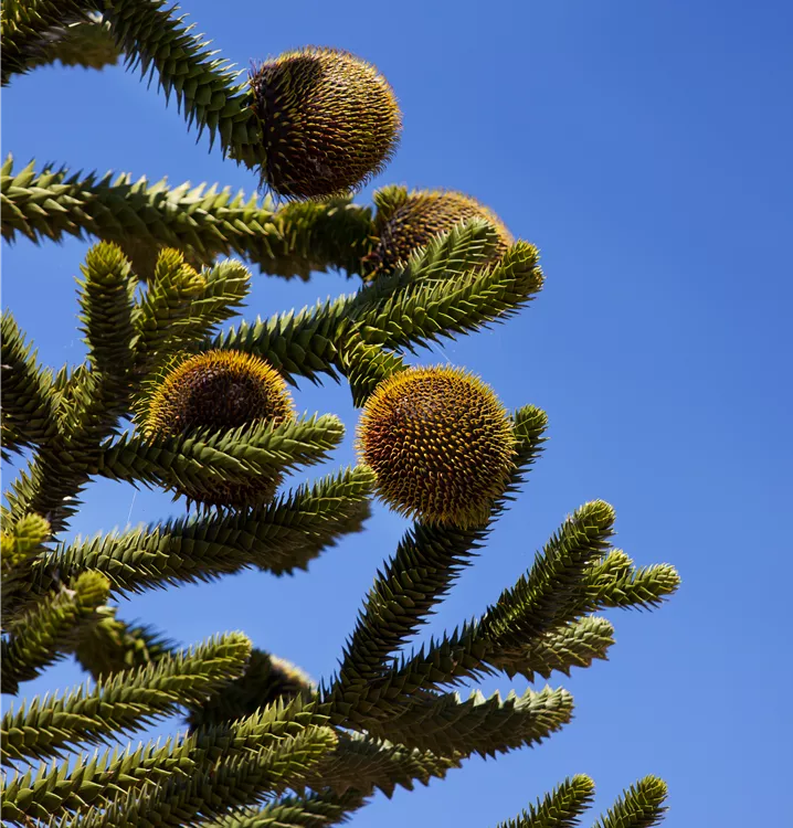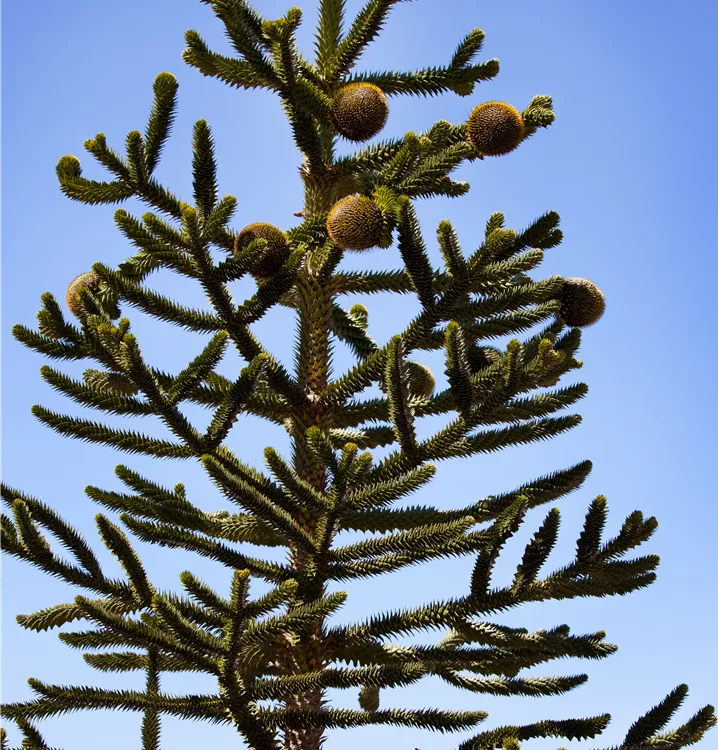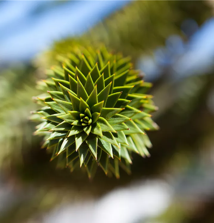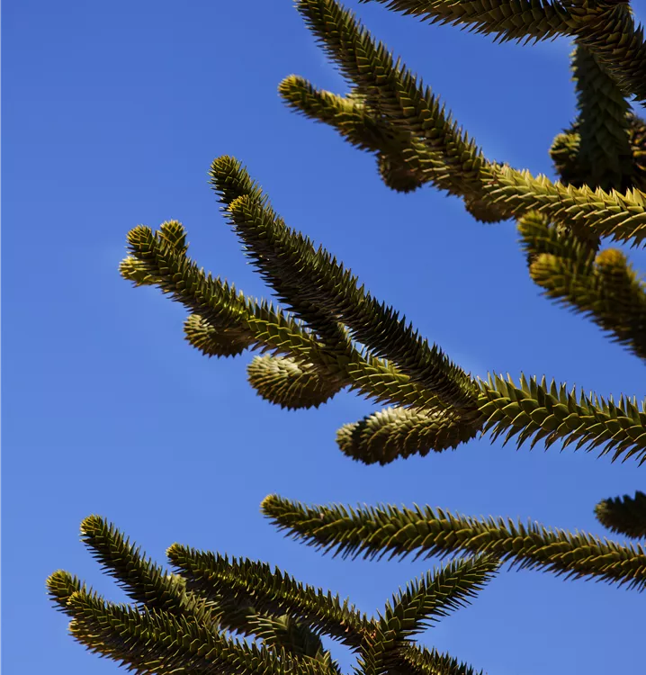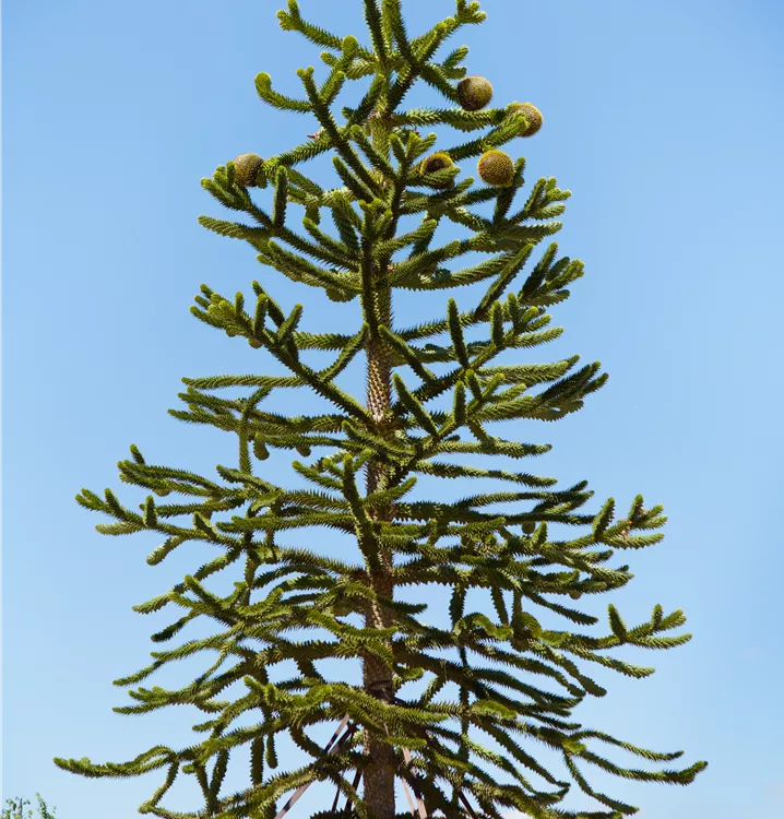 Krone eikegelförmig. Blätter starr, dicht spindel-
