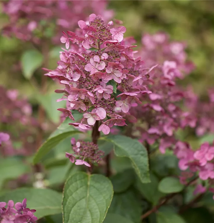 Wie ein Glas Rosé in der Abendsonne entfaltet die Rispenhortensie 'Wims Red' ihr faszinierendes Farbspiel. Ihre Blütenrispen öffnen sich cremeweiss, wandeln sich über zartes Rosa zu tiefem Weinrot – ein sinnlicher Verlauf, der den Garten vom Sommer bis weit in den Herbst hinein belebt.