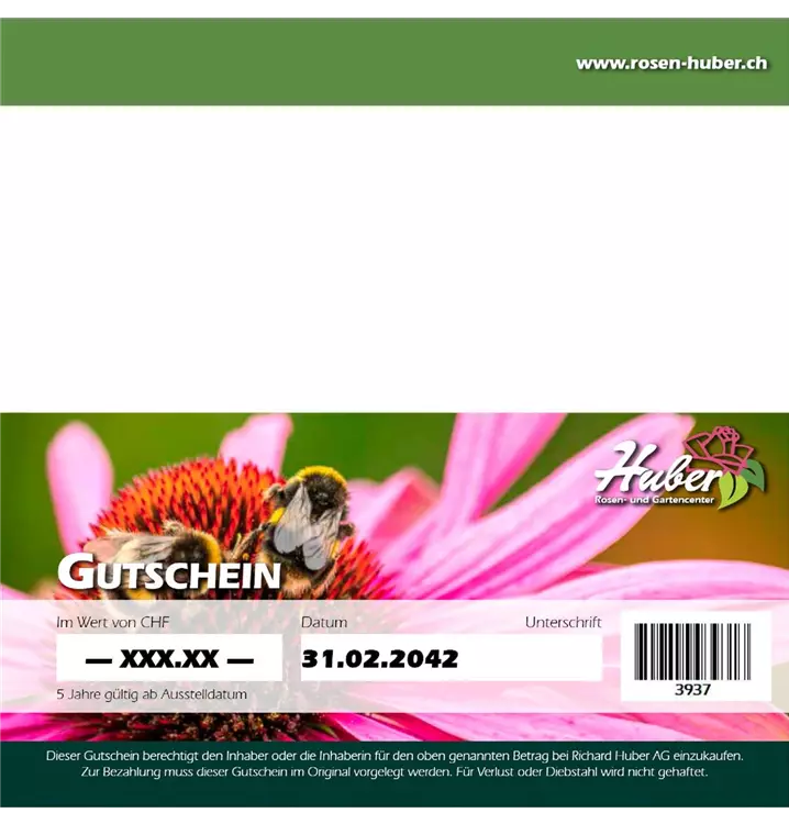 Die Beträge sind frei wählbar und können in Teilbeträgen eingelöst werden. Wenn Sie einen anderen Betrag wünschen, kontaktieren Sie uns gerne per E-Mail info@rosen-huber.ch oder Telefon (056 624 24 24).