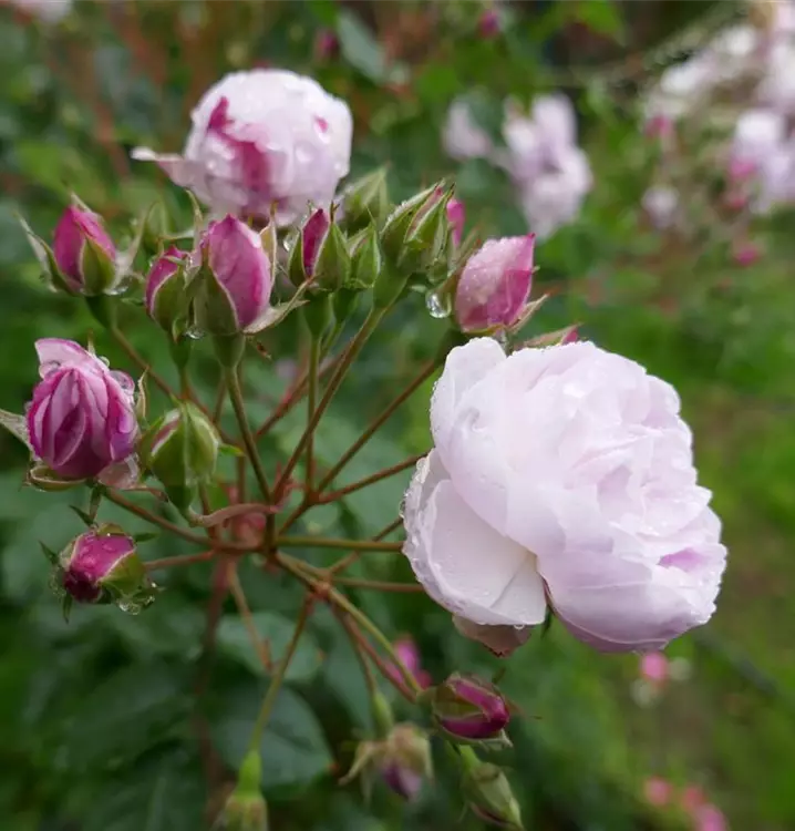 Die nostalgische Rosa ‘Multiflore de Vaumarcus’ ist eine historische Noisette, die um 1875 in der Schweiz durch André Menet entdeckt wurde. Ihren Namen erhielt sie nach dem Schloss Vaumarcus, wo sie in der Sammlung von Baron de Büren gefunden wurde. Diese wertvolle Fundrose begeistert bis heute durch ihre charmante Blütenfülle und ihre aussergewöhnliche Gesundheit.