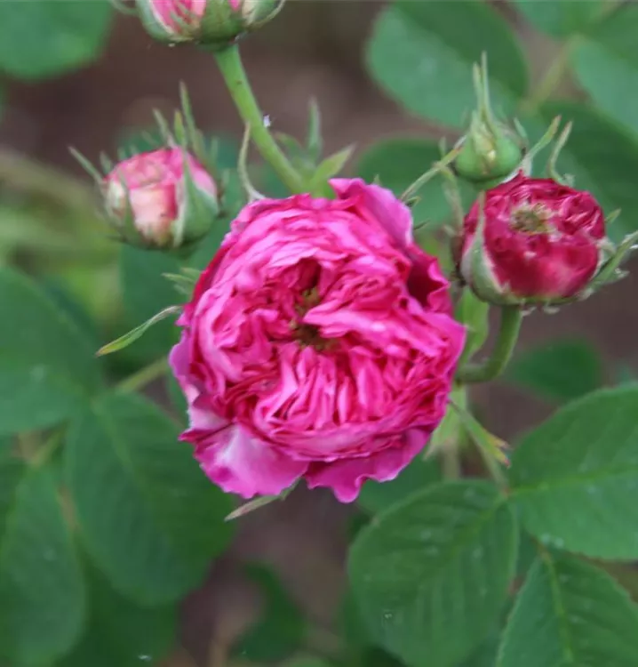 Gallica-Rose Assemblage des Beautés – historische Schönheit in Purpurrot