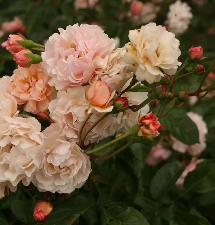 Pflanze: bronzefarbiges, dunkles Blattwerk – öfterblühend – 100 bis 150 cm hoch