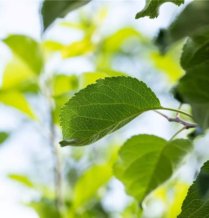 Baum breitrund, Frucht mittel, rot, süss, saftig, fest, Reife 10 - 2, lagerfähig, normale Lagen