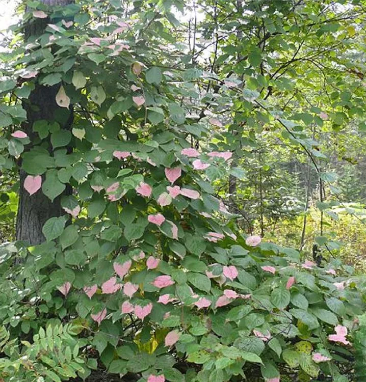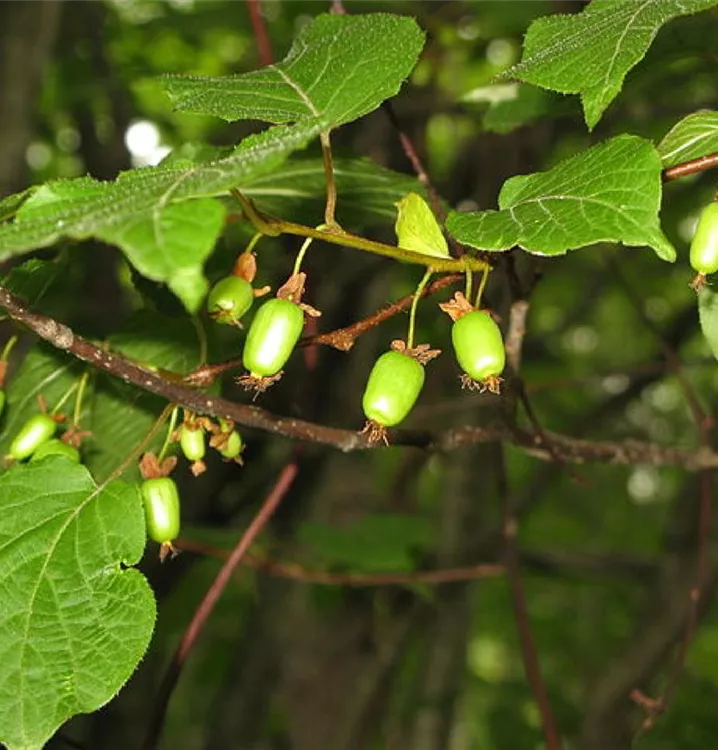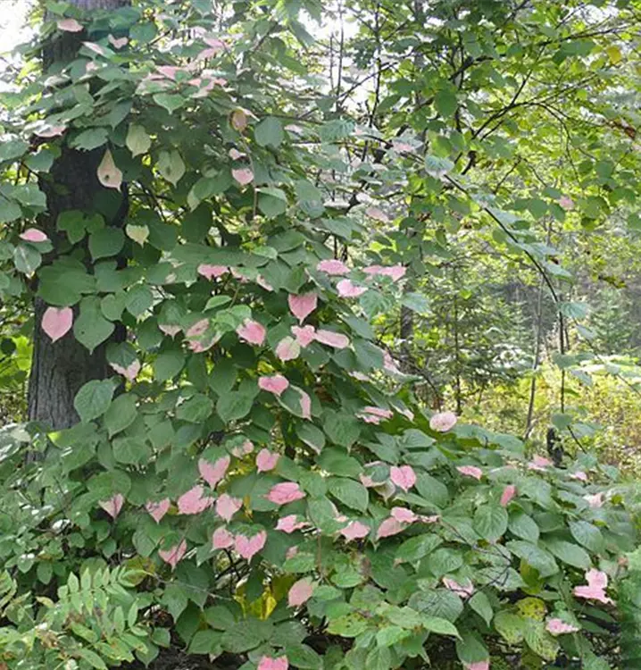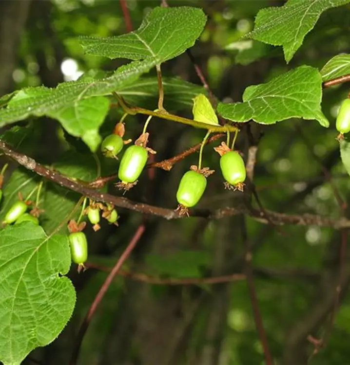 Besonderes: Braucht Kletterhilfe. Blätter verfärben sich im Sommer weiss bis hellrosa, teilweise himbeerrot. Frucht ca. 2-3 cm gross, gelbgrün und süss.