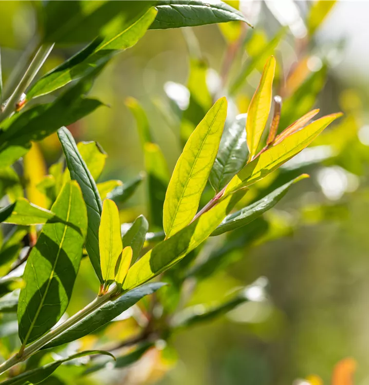 (Punica granatum) Ein Symbol des Lebens und der Schönheit: Grossfruchtige (bis 12 cm Durchmesser), rotschalige Granatäpfel. Im Inneren sind Samen enthalten mit rotem, süss-säuerlichem aromatischem Fruchtfleisch. Die Frucht reift innerhalb 57 Monaten aus sehr attraktiv grossen, kräftigen orangefarbenen Blüten. Etwas füher reif als andere Sorten. Hoher Zierwert. Selbstfruchtbar.