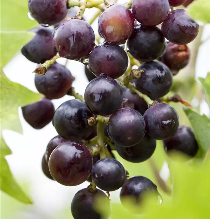 Frucht: MIttelgrosse blaue Beeren. Lockere lange Trauben. Ertragreich und sehr starker Foxgeschmack.