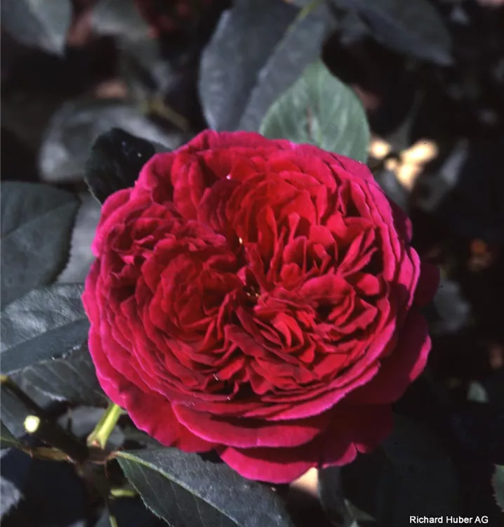 Blüte: sattes, dunkles Karmesinrot bis purpurrot – grosse, schalenförmige Blüten – dicht gefüllt – duftend.
