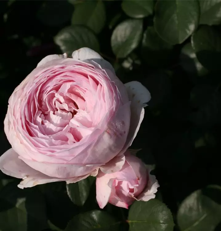 Blüte: weiches Rosa mit einem Hauch von Lila, später weisslich – dicht gefüllt – schalenförmig – duftet wie eine alte Rose mit einem Hauch Apfelduft.