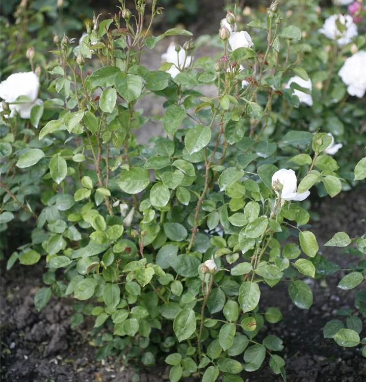 Blüte: reines Weiss – stark gefüllte, kelchförmige Blüten – starker Myrrheduft.