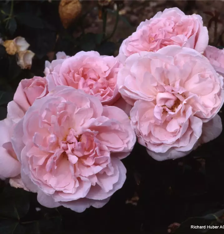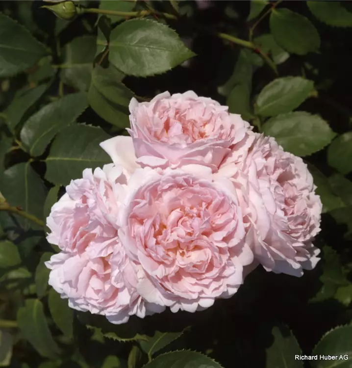 Blüte: schönes, helles Pastellrosa – kugelige, paeonienförmige Blüte – wunderschön geformt – leichter Wildrosenduft.