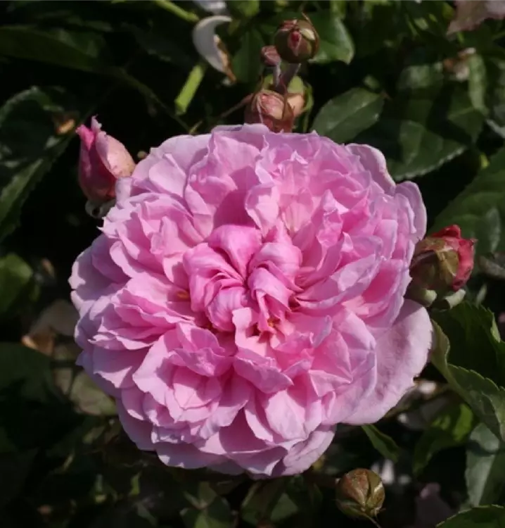 Blüte: kräftiges Rosa mit Lilaton - perfekt geforme Rosetten - süsser würziger Duft nach alten Rosen. Pflanze: niedriger, hübscher, rundlicher Wuchs - überhängede Zweige - 80 cm hoch und breit.