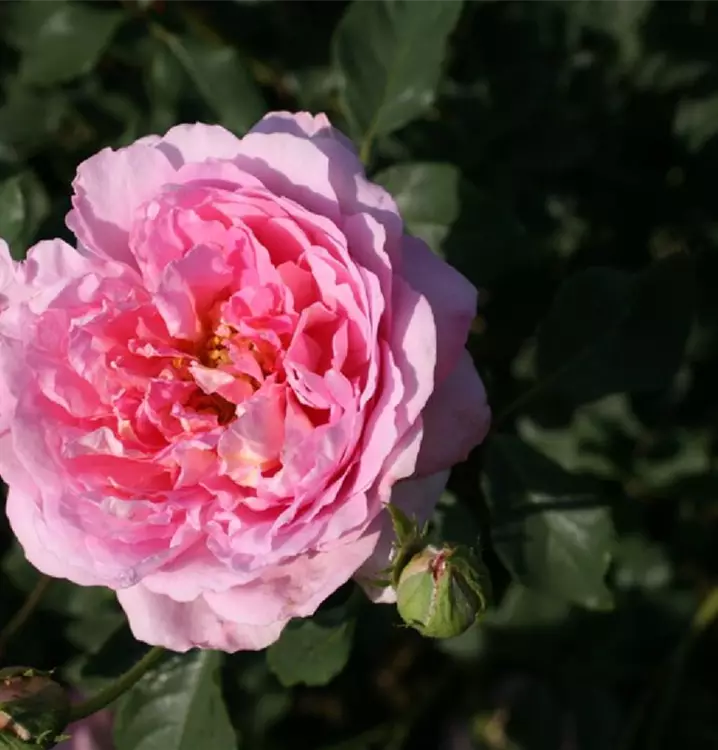 Blüte: Innenseite der Blütenblätter dunkelrosa, in Violett übergehend – Aussenseite heller – tiefe Schalenform – köstlicher, fruchtiger Duft.