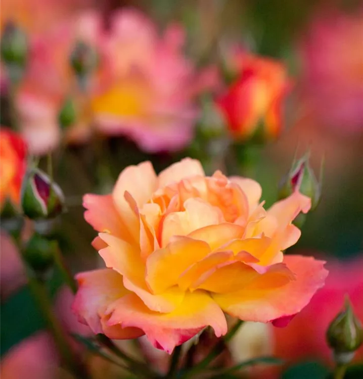 Anne Frank bringt mit ihren warmen, lachsorangen bis apricotfarbenen Blüten eine lebendige, positive Stimmung in den Garten. Die Blüten erscheinen in dichten Büscheln und sorgen über viele Wochen hinweg für ein gleichmässiges, leuchtendes Blütenbild. Ihre freundliche Farbwirkung lässt sich vielseitig kombinieren.