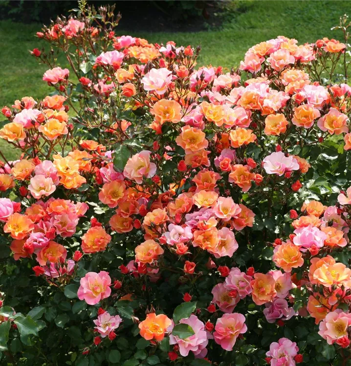 Diese Floribundarose wächst buschig und aufrecht mit einer Wuchshöhe von 60–80 cm und einer Wuchsbreite von etwa 50–60 cm. Von Juni bis Oktober zeigt sie eine kontinuierliche, reiche Blüte mit guter Nachblüte. Das dunkelgrüne Laub bildet einen schönen Kontrast zu den warmen Blütentönen.