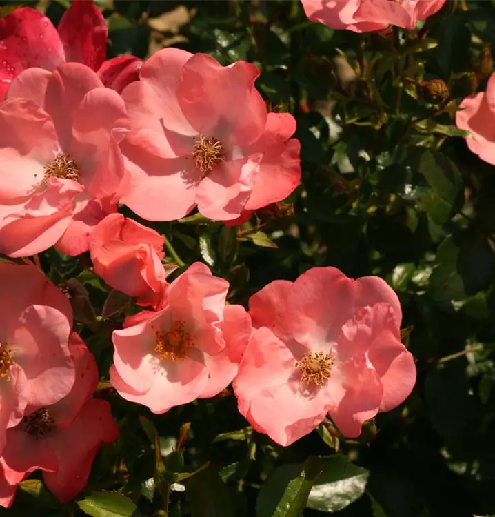 Die Bodendeckerrose 'Alfabia' erfreut mit zartrosafarbenen, halbgefüllten Blüten, die sich über das frischgrüne, dichte Laub schmiegen und von Juni bis Oktober immer wieder erscheinen. In der Fläche gepflanzt entsteht ein harmonischer Blütenteppich, der Beete, Hänge oder Wegbegrenzungen mit freundlicher Leichtigkeit erfüllt.
